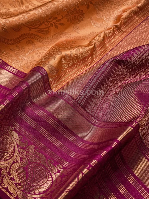 Parrot Green Body and Peacock Blue Border Pure Kanjivaram Saree