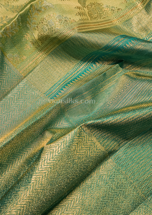 Parrot Green Tone Body and Teal Green Border Pure kanjivaram saree