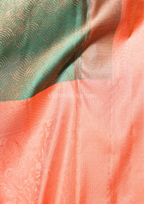 Pastel Mint Green & Peach Coral Silk Saree with Elegant Zari Border kanjivaram silk saree