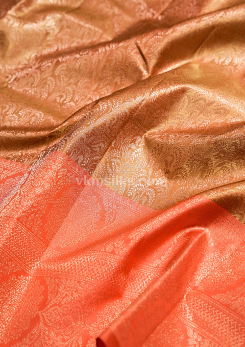 Mustard Gold & Coral Pink Pure Silk Saree – Elegant kanjivaram silk saree