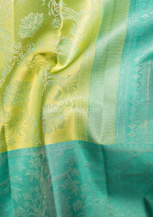 Lime Green Body and Teal Green border Light weight Pure kanjivaram saree