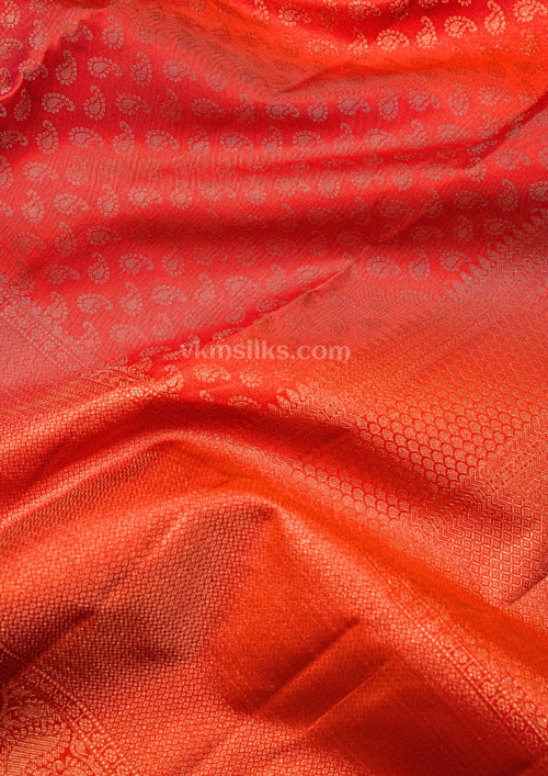 Rich Vermilion Red with Gold Zari Weaving Monotone Kanjivaram silk saree